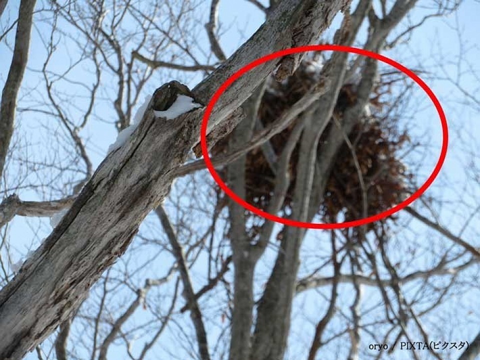 山へハイキングやお出かけに行った際、クリの木を見上げると、枝の上に鳥の巣のような大きな塊を見つけることがあります。